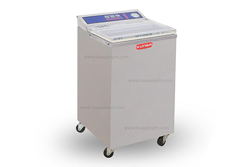 3、压下机盖,当面板上抽气(真空)指示灯亮时。真空泵开始抽气,机盖即被自动吸住,抽真空旋钮可根据包装要求调节真空度高低,调节时,视刻度由低至高,幅度要小。