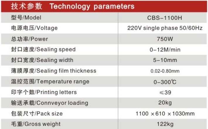 多功能卧式大功率连续封口机CBS-1100H产品说明