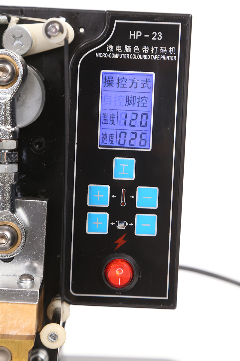 HP23电脑版电动色带打码机,热打码机采用热打印色带,免除油墨污染之忧,保证手和机械卫生、干净、可适用于食品、医药等行业在塑料袋和纸袋上打印生产日期、重量、批号等,印字清晰牢固,永不脱落。