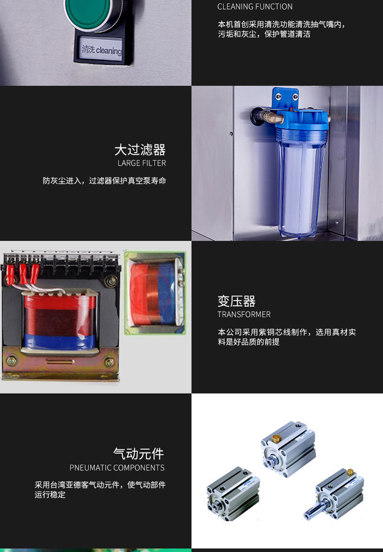 • 真空泵可选:气动泵、油泵、无油泵