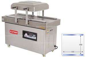 平板型食品真空包装机DZ-600/2SB,效率更高。一室在包装时,另一室可以在准备物品放入,等一室包装完毕,移到另一室就可以马上包装,效率比单室提高一倍。DZ-600/2SB平板型双室真空机只需按下真空室盖即可按设定的程序完成抽真空,充气(选配),封口,印字(选配),冷...