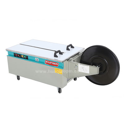 自动捆扎机(高台)KZB-I是一款以聚乙烯塑料带为捆扎材料、主要用于商业、邮政、铁路、银行、食品、医药、书刊、发行等行业的纸箱、木箱、纸包件、布包件的包装捆扎设备。该机在插入打包带之后可自动完成束紧、切带工作,并通过热粘合的方式将打包带两端粘结。