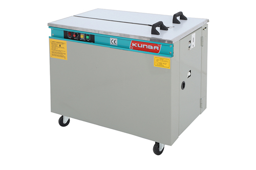 自动捆扎机(高台)KZB-I是一款以聚乙烯塑料带为捆扎材料、主要用于商业、邮政、铁路、银行、食品、医药、书刊、发行等行业的纸箱、木箱、纸包件、布包件的包装捆扎设备。该机在插入打包带之后可自动完成束紧、切带工作,并通过热粘合的方式将打包带两端粘结。